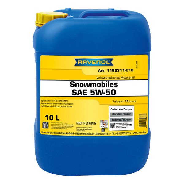 Այն ունի բարձր մածուցիկության ինդեքս՝ հատուկ ընտրված հավելանյութերի փաթեթի և բանաձևի շնորհիվ։ «Սառը» մեկնարկի դեպքում գերազանց հատկությունները ապահովում են օպտիմալ քսում։ RAVENOL Snowmobiles 4-Takt Fullsynth-ի վառելիքի խնայողության շնորհիվ։ ապահովում է մթնոլորտ արտանետումների կրճատում։